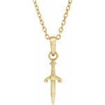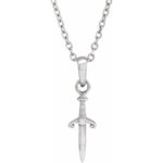 Regal Edge Necklace, inspired by Psalm 144:1. Crafted with precision, it features a striking dagger pendant symbolizing strength and protection. Wear it as a reminder of God's guidance through life's battles.
