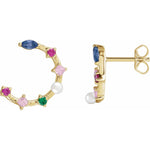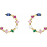 Gleaming Gemstone Pearl Earrings, a divine fusion of elegance. Crafted with care, they feature lustrous pearls adorned with natural multi-colored gemstones. Inspired by Proverbs 31:10, wear them as a symbol of your inner worth and dignity.