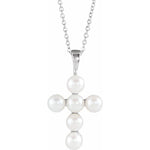 Pearl Cross Grace Necklace, a symbol of divine grace and faith. Crafted with care, it features lustrous pearls arranged in the shape of a cross. Inspired by Ephesians 2:8, wear it as a reminder of God's saving grace.